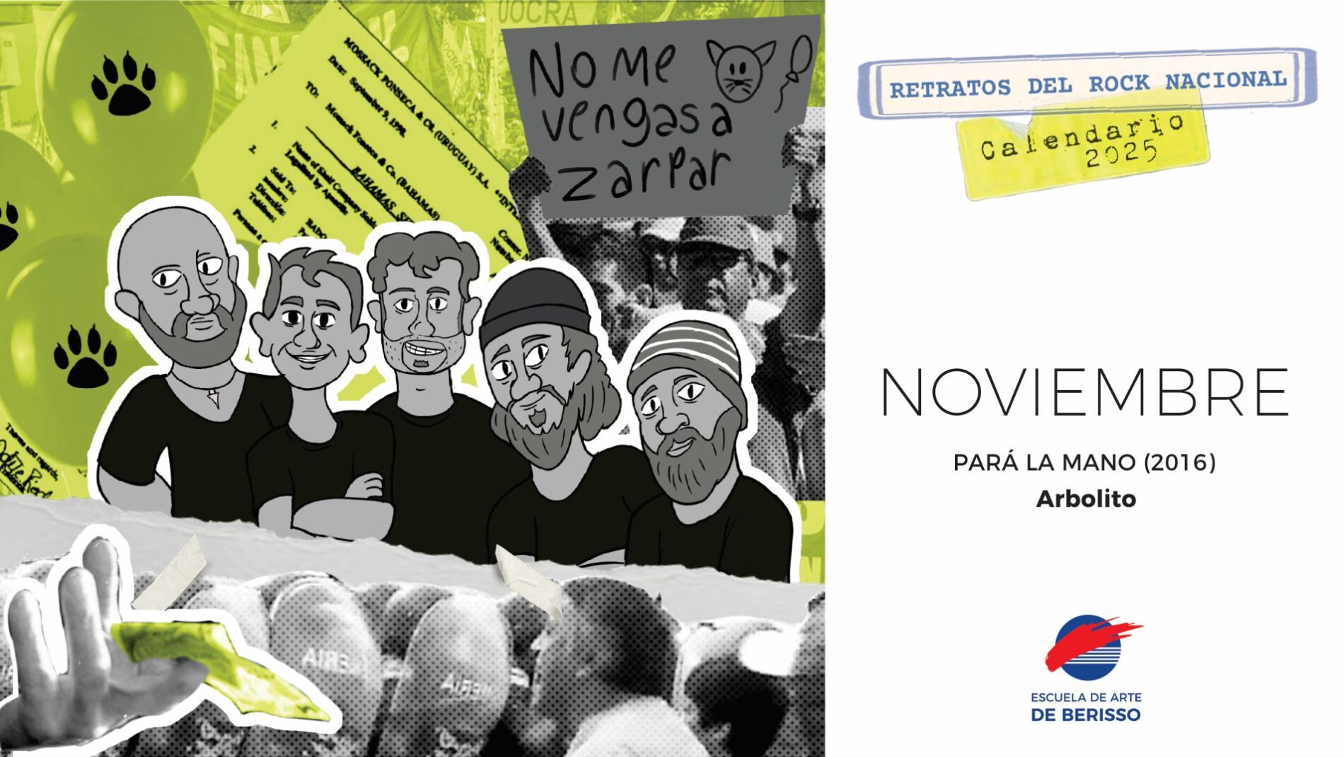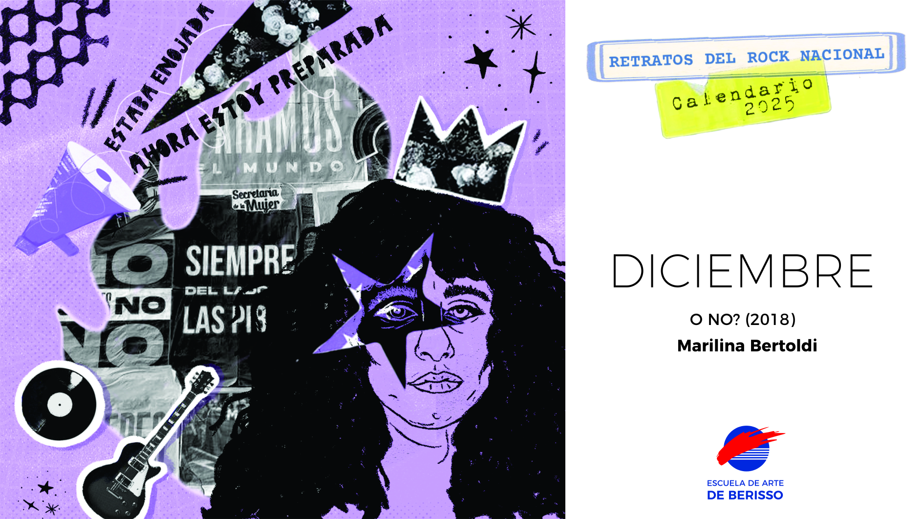En su decimotercera edición, el Calendario Interdisciplinario 2025 de la Escuela de Arte de Berisso aborda la temática Retratos del rock nacional: compromiso y crítica político social. Es un Proyecto de Prácticas Pedagógicas y Profesionalizantes,  coordinado por los profesores Paula Pellegrino y Alejandro Pereira Ghiena, y las estudiantes Sheila Clidas y Sofía García, en el que participaron más de cincuenta integrantes de nuestra comunidad educativa en articulación con la Facultad de Artes.